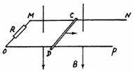 28.(18分)如图所示,电阻不计的平行金属导轨MN和OP水平放置.MO间接有阻值为R的电阻.导轨相距为d,其间有竖直向下的匀强磁场,磁感强度为B.质量为m,电阻为r的导体棒CD垂直于导轨放置,并接触良好.用平行于MN的恒力
