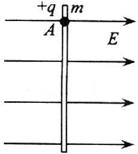 34.(20分)如图,空间区域内同时存在水平方向的匀强电场和匀强磁场,电场与磁场方向互相垂直。已知场强大小为E,方向水平向右;磁感强度大小为B,方向垂直纸面(向里、向外未知)。在电场、磁场中固定一根竖直的绝缘杆,杆上套一个质量为m、电量为+q的小球。小球与杆之间的动摩擦因数为μ。从点A开始由静止释放小球,小球将沿杆向下运动。设电场、磁场区域很大,杆很长。试分析小球运动的加速度和速度的变化情况,并求出小球运动所能达到的最大速度。