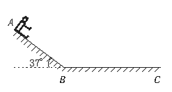 (15分)在海滨游乐场里有一种滑沙的游乐活动。如图所示,人坐在滑板上从斜坡的高处由静止开始滑下,滑到斜坡底端B点后沿水平的滑道再滑行一段距离到C点停下来。若某人和滑板的总质量m=60.0 kg,滑板与斜坡滑道和水平滑道间的动摩擦因数相同,大小为μ=0.50,斜坡的倾角θ=37°。斜坡与水平滑道间是平滑连接的,整个运动过程中空气阻力忽略不计,重力加速度g取10 m/s2。