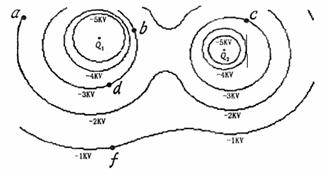 21.点电荷Q1、Q2产生的静电场的等势面如图中实线所示,标在等势面上的数值分别表示该等势面的电势,a、b、c…表示等势面上的点,下列说法正确的是 ( )