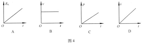 、v、p和s,分别表示物体运动的动能、速度、动量和位移,图4的四个图象分别定性地描述这些物理量随时间变化的情况,其中正确的是()