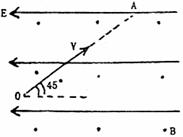 19.质量为m、带电量为q的微粒以速度v与水平成45°角进入匀强磁场中,如图所示,磁