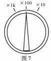 (1)如图7所示为某同学用多用电表欧姆档测量一个电阻阻值的示数和档位情况,则这个电阻的阻值约为 Ω。