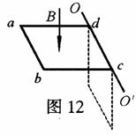 24.(19分)图12所示,由粗细相同的导线制成的正方形线框边长为L,每条边的电阻均为R,其中ab边材料的密度较大,其质量为m,其余各边的质量均可忽略不计。线框可绕与cd边重合的水平轴OO′自由转动,不计空气阻力及摩擦。若线框从水平位置由静止释放,经历时间t到达竖直位置,此时ab边的速度大小为v。若线框始终处在方向竖直向下、磁感强度为B的匀强磁场中,重力加速度为g。求(1)线框以竖直位置时,ab边两端的电压及所受安培力的大小。(2)在这一过程中,线框中感应电动势的有效值。(3)在这一过程中,通过线框导线横截面的电荷量。