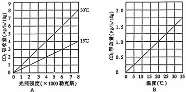 CO2的释放量表示),下图曲线A表示:分别在15℃和30℃条件下,测得的叶绿体在不