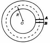 带正电粒子在环中做半径为R的圆周运动。A、B为两块中心开有小孔的极板,原来电势