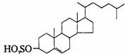 根据有机物键线式的书写方法及胆固醇分子中含有一个醇羟基的结构特点,不难得出,胆固醇的分子式为C27H46O,其硫酸氢酯的结构简式如右图。
