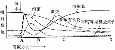 下图是河流生态系统受到生活污水(含大量有机物)轻度污染后的净化过程示意图。