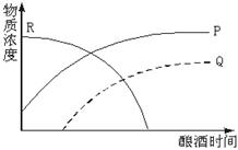 在用酵母菌做家庭酿酒的过程中,从密闭的发酵罐中检测到三种化学物质,其浓度变化如下图,图中P、Q、R三曲线依次代表