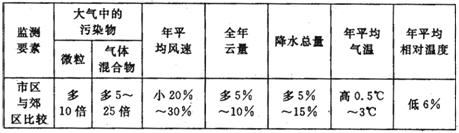 读某市区与郊区天气和空气质量监测比较表,回答。