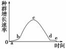 群增长速率最大。c-d段表示种群的增长速率在减小,但种群数量一直在变大。e点