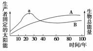 6.(2010·茂名模拟)下图表示某生态系统在发展的过程中生物总能量(A)和生产者所固定的太