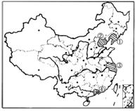 44.右图阴影部分表示我国四大工业区的分布,请找出正确选项