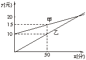 19.(10分)如图2所示,是某电信公司甲、乙两种业务:每月通话费用y(元)与通话时间x(分)之间的函数关系.