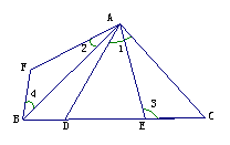 D、E在BC上,∠DAE = 45º,