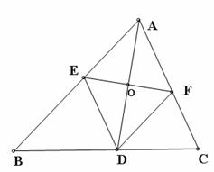 (8分)如图:AD是△ABC中∠BAC的平分线,EF垂直平分AD,分别交AB于E,交AC于F,请证明四边形是菱形。