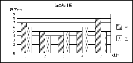 21.水稻种植是嘉兴的传统农业.为了比较甲、乙两种水稻的长势,农技人员从两块试验田中,分别随机抽取5棵植株,将测得的苗高数据绘制成下图: