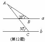 如图所示,直线a∥b,则∠A= 度.