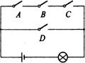22如图.电路图上有四个开关A、B、C、D和一个小灯泡,闭合开关D或同时闭合开关A,B,C都可使小灯泡发光。