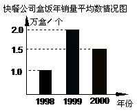 23、(本题6分)小李通过对某地区1998年至2000年快餐公司发展情况的调查,制成了该地区快餐公司个数情况的条形图如图所示,和快餐公司盒饭年销量的平均数情况条形图,利用这些信息解答下列问题: