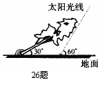 (本题8分)如图,太阳光线与地面成60°角,一棵倾斜的大树与地面成30°角,这时测得大 树在地面上的影长约为10m,求大树的长(保留两个有效数字,下列数据供选用: