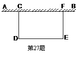 27、(本题10分) 如图,某校广场有一段25米长的旧围栏,现打算利用该围栏的一部分(或全部)为一边,围成一块100平方米的长方形草坪(如图CDEF,CD<CF)已知整修旧围栏的价格是每米1.75元,建新围栏的价格是每米4.5元。