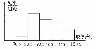 为了解教学情况,某校抽取了部分初三年级学生期末数学考试成绩,将所得分数整理后,画出频率分布直方图(分数取整数,满分120分),如图14所示,图中从左到右各小组的小长方形面积之比是5:16:13:9:7,第一小组的频数为10.