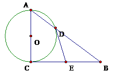 如图15,以Rt△ABC的直角边AC为直径作⊙O,交斜边AB于点D,E为BC边的中点,连DE.