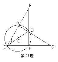 27、(本题满分8分)如图,BD是⊙O的直径,∠1=∠C,