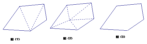 22、小明和小亮分别利用图(1)、(2)的不同方法求出了五边形的内角和都是540°。请你考虑在图(3)中再用另外一种方法求五边形的内角和。并写出求解过程。