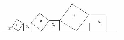 在直线l上依次摆放着七个正方形(如图所示)。已知斜放置的三个正方形的面积分别是1、2、3,正放置的四个正方形的面积依次是S1、S2、S3、S4,则S1+S2+S3+S4=_________。