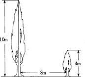 24.如图7,有两棵树,一棵高10米,另一棵高4米,两树相距8米. 一只小鸟从一棵树的树梢飞到另一棵树的树梢,问小鸟至少飞行多少米?