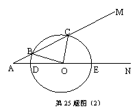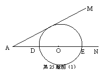25.已知:∠MAN=30°,O为边AN上一点,以O为圆心、2为半径作⊙O,交AN于D、E两点,设AD=