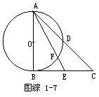 2.如图综1-7,AB是⊙O直径,BC是切线,E是BC上一点,若∠C=45°