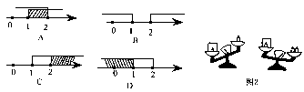 12.如图,天平右盘中的每个砝码的质量都是1g,则物体A的质量m(g)的取值范围,在数轴上可表示为 ( )