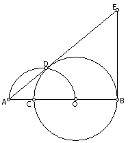 18.如图,O是已知线段AB上一点,以OB为半径的⊙O交线段AB于点C,以线段AO为直径的半圆交⊙O于点D,过点B作AB的垂线与AD的延长线交于点E;