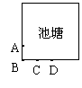 3.如图,边长为12米的正方形池塘的周围是草地,池塘边A、B、C、D处各有一棵树,且AB=BC=CD=3米.现用长4米的绳子将一头羊拴在其中的一棵树上.为了使羊在草地上活动区域的面积最大,应将绳子拴在( ).