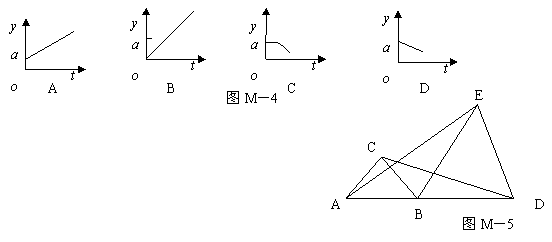 10.某工厂去年积压产品a件( a>0),今年预计每月销售产品2b件(b>0),同时每月生产产品b件,如果产品积压量y(件)是今年开工时间t(月)的函数。在图M-4中,图象只能是( )