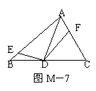 如图M-7,△ABC中,AD是∠A的平分线,E,F分别为AB,AC上的点,且,∠AED+∠AFD=180°,求证:DE=DF.