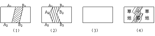 (1)在图3-2-38(3)中请你类似地画一条有两个折点的折线,同样向右平移1个单位,得到一个封闭图形,用斜线画出阴影;(2)请你分别写出上述三个图形中除去阴影部分后剩余图形的面积:S1= ;S2= ;S3= 。(3)联想与探索:如图3-2-38(4)在一块矩形草地上,有一条弯曲的柏油小路(小路任何地方的水平宽度都是1个单位)。请你猜想空白部分表示的草地面积是多少?并说明你的猜想是正确的。