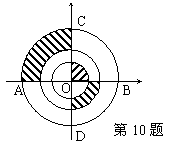 10、如图所示,三圆同心于O,AB=4cm,CD⊥AB于O,则图中阴影部分的面积为 。