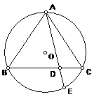 例4、ΔABC内接于⊙O,AB=AC,弦AE交BC于D。求证:![]()