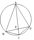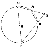 例8、如图弦AC=AB,连结CA到D,使AD=AC,连结DB并延长交圆于E。