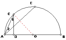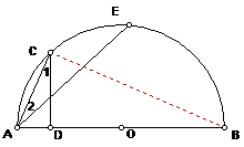 《海淀题链》P241例3:已知:如图,AB是半圆O的直径,C和E是半圆上两点,CD⊥AB于D,连结AE,若AC=CE。求证:∠1=∠2