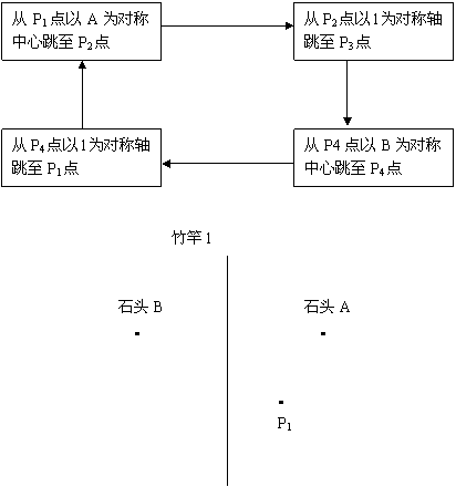 如图,石头A和石头B相距80厘米,且关于竹竿l对称,一只电动青蛙在距竹竿30厘米,距石头A为60厘米的P1处,按如下顺序循环跳跃:
