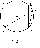 9、如图2,正方形ABCD的顶点都在⊙O上,P是弧DC上的一点,则∠BPC的度数是_________。
