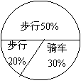 (3)在扇形统计图中,求骑车人数所占的圆心角度数。