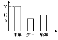 8、右图是某班学生外出乘车、步行、骑车的人数分布直方图和扇形分布图。