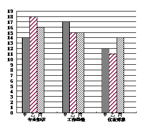 (2)如果专业知识、工作经验、仪表形象三个方面的重要性之比为10∶7∶3,那么作为人事主管,你应该录用哪一位应聘者?为什么?(4分)