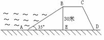 4.(南安市)某市对一水库进行除险加固,加固后的拦水坝的横断面为梯形ABCD(如图所示),请你根据图中的数据,求出迎水面AB的长度(精确到0.1米).